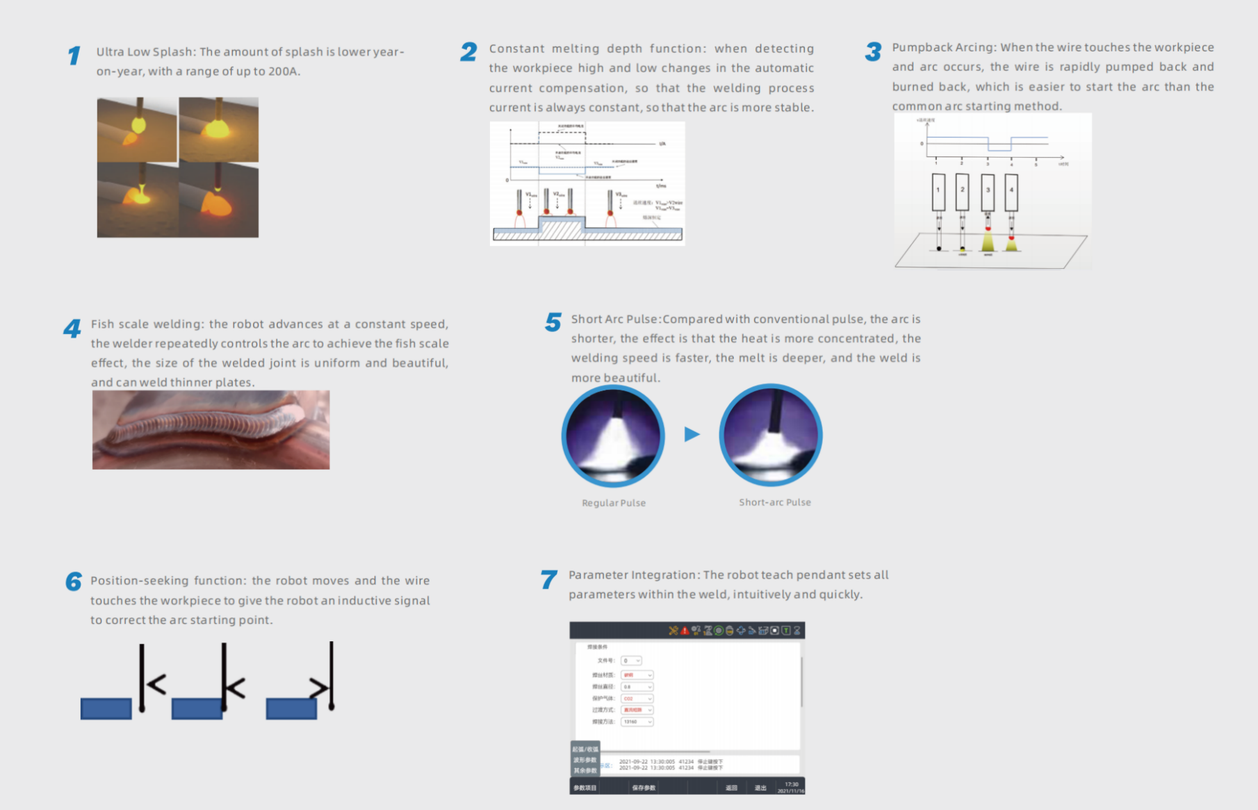 Short arc pulse, beautiful molding, fast welding speed.
