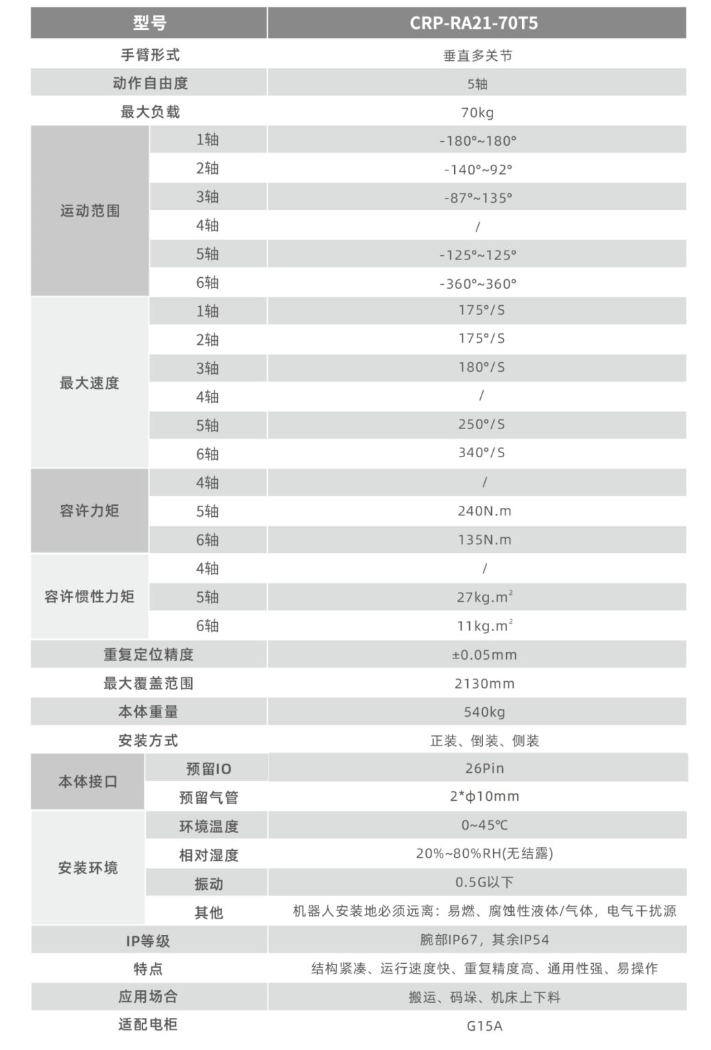 運行速度快,重復定位精度,適用于搬運、裝配、打磨等場(chǎng)景。