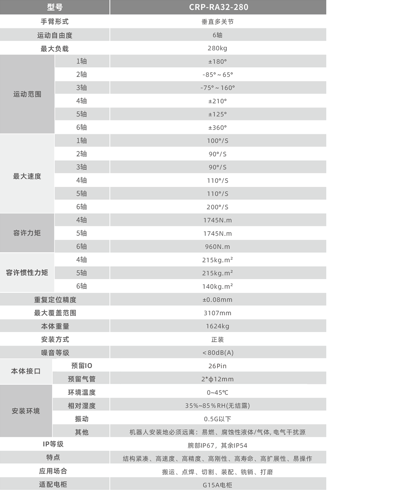 • 電機內置,外觀(guān)簡(jiǎn)潔,適于狹小空間作業(yè),運動(dòng)更靈活。