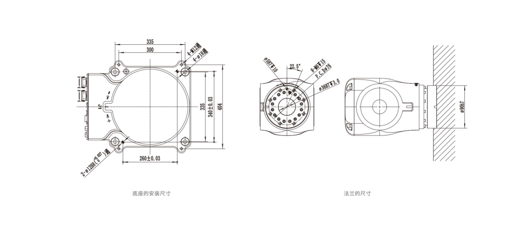 J2、J3、J4軸上都預留安裝孔位,方便安裝固定電磁閥以及其他配件等。J3軸位置提供用戶(hù)IO接口以及雙回路氣管,更加滿(mǎn)足搬運應用。